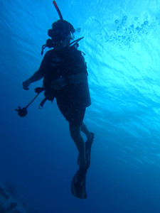 The PADI course started on Monday in a tiny swimming pool that will forever be remembered for the floating jobbies. Lucy got it in her head that these were child poos and was incredulous that the “management” could not be bothered to pick them out leaving them for us to suck into our snorkels. Her irritation could not be contained and started a vociferous complaint and without drawing breath, prevented the perplexed diving instructor to get a word in edgeways. Eventually, Lucy ran out of expletives and the very nice instructor Guus (pronounced goose), calmly said he was very sorry but they were Iguana Poos who preferred to do floaters. Tuesday we progressed to the sea and all sorts of complex drills had to be perfected such as taking your mask off 10m down, swimming blind, then putting it back on and getting rid of the water. Thanks to Lucy’s brothers Michael and Richard who used to delight in torturing their seven year old sister by putting her into the bottom of a sleeping bag not let her out for three hours, suffers from extreme claustrophobia and hyperventilates at any confined space smaller than the millennium dome. Just being underwater was a significant test of her resolve but to do all these pant filling exercises was beyond the pale. There was more of the same on Wednesday and poor Lucy was tittering on the edge with bottom lip wobbles. But I got to tell you, she pulled through and slam dunked it and I’m proud as punch of her.